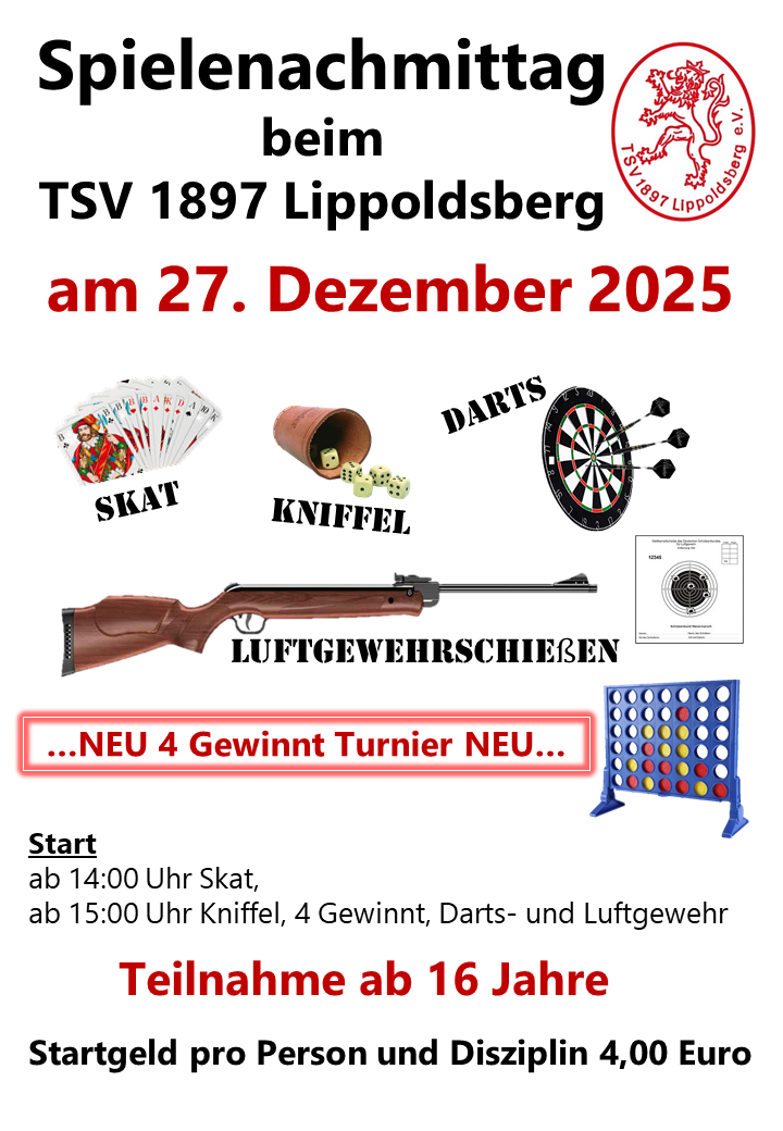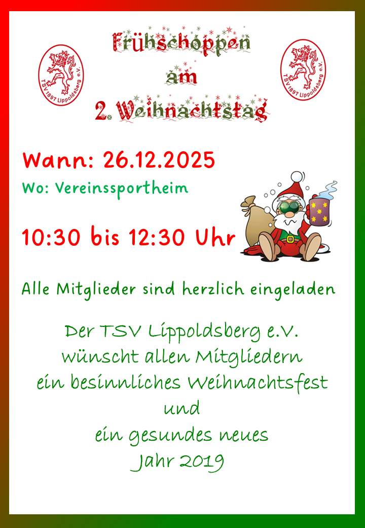 Der TSV 1897 Lippoldsberg läd in diesem Jahr, nach der Corona Zeit, mal wieder alle seine Mitglieder am 2. Weihnachtstag zu einem geselligen Frühschoppen ein.