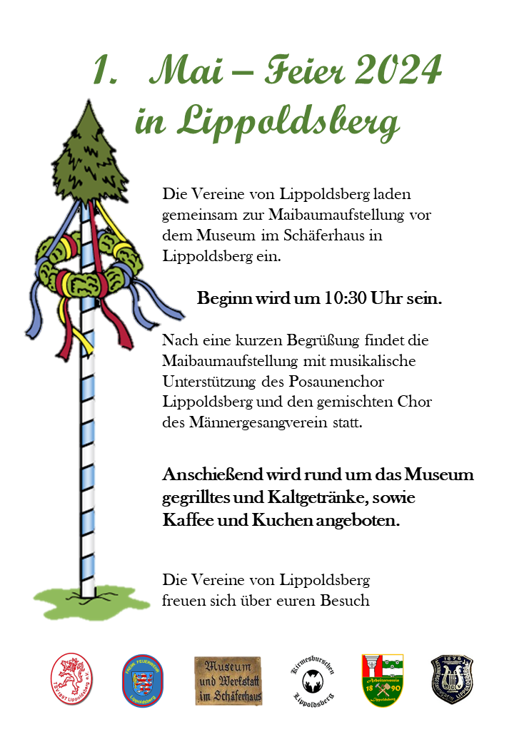 der TSV 1897 Lippoldsberg organisiert mit den anderen Vereinen des Ortes eine gemeinsame 1. Mai Feier vor dem Lippoldsberger Museum.